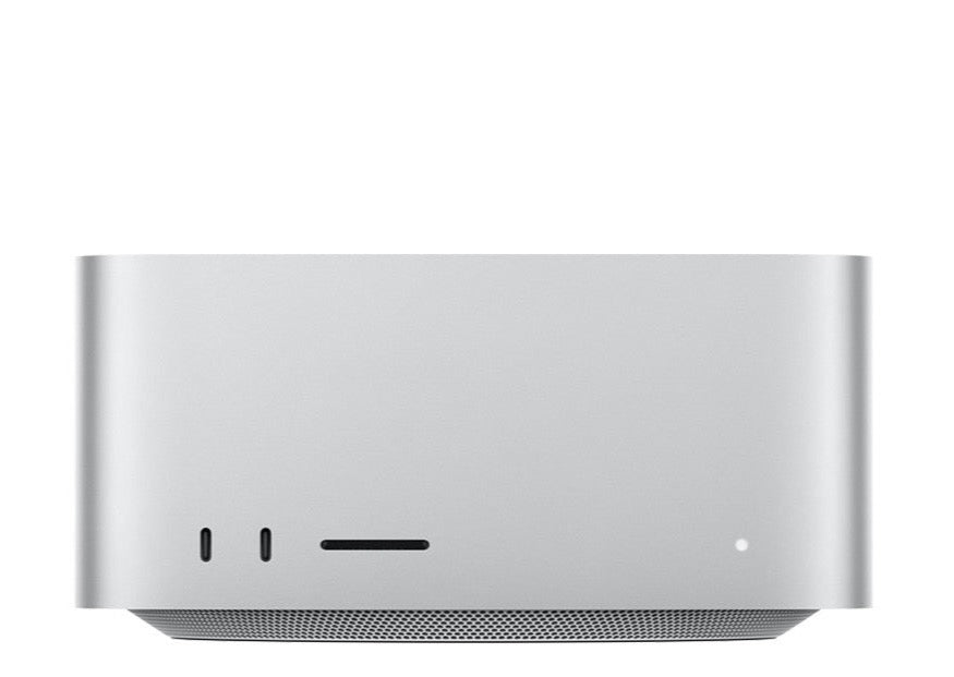 - Achterkant: vier Thunderbolt 5-poorten, twee USB‑A-poorten, HDMI-poort, 10‑Gb Ethernet-poort, mini‑jack-aansluiting